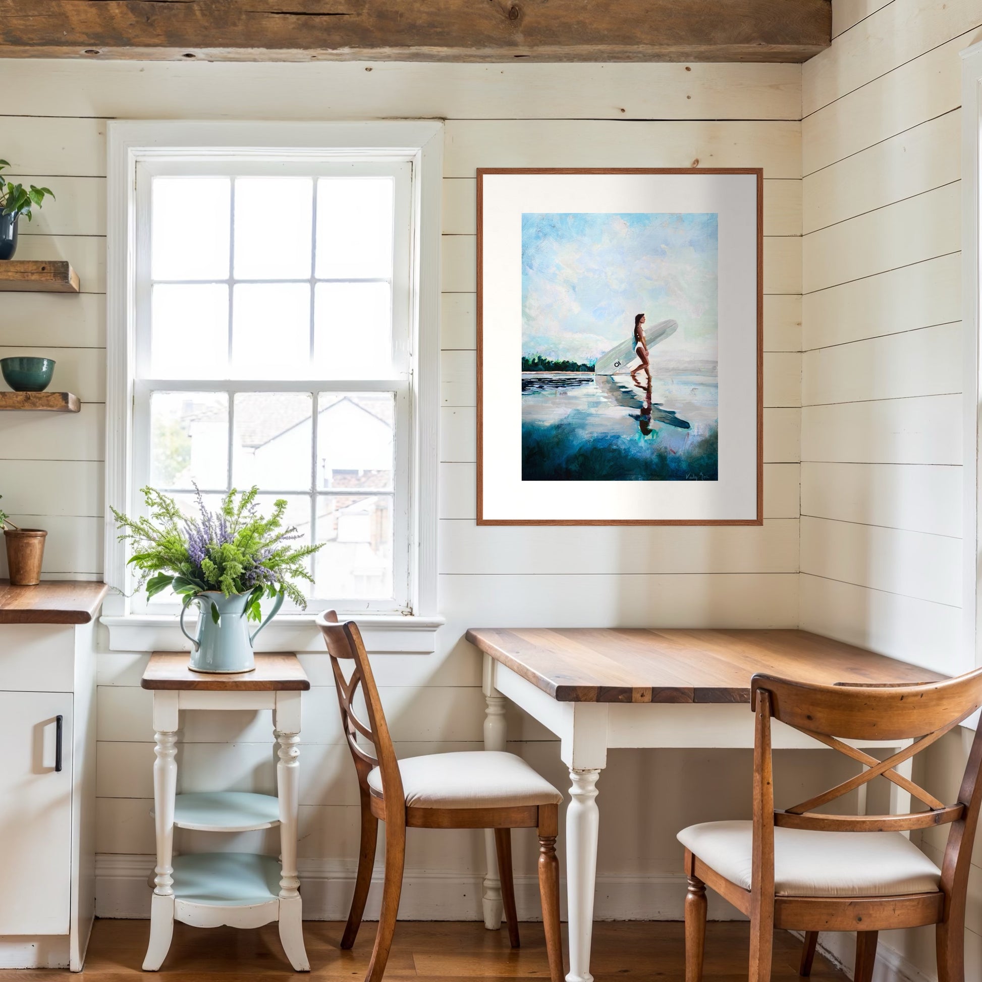 Oil and mixed media paintings are best kept in low-humidity environments. It's recommended to avoid hanging paintings in direct sunlight.