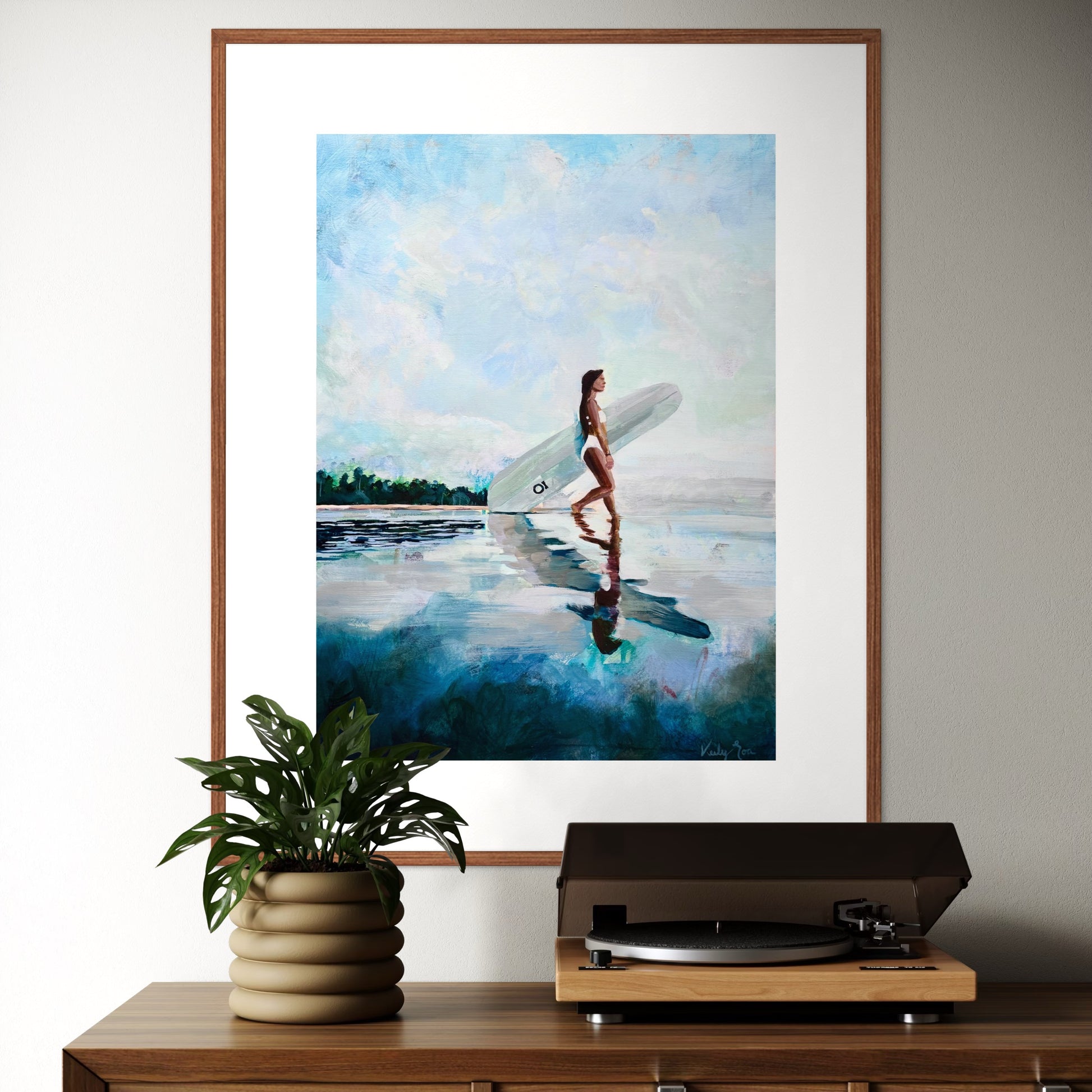 Art on paper is best displayed with matting, framed behind glass.