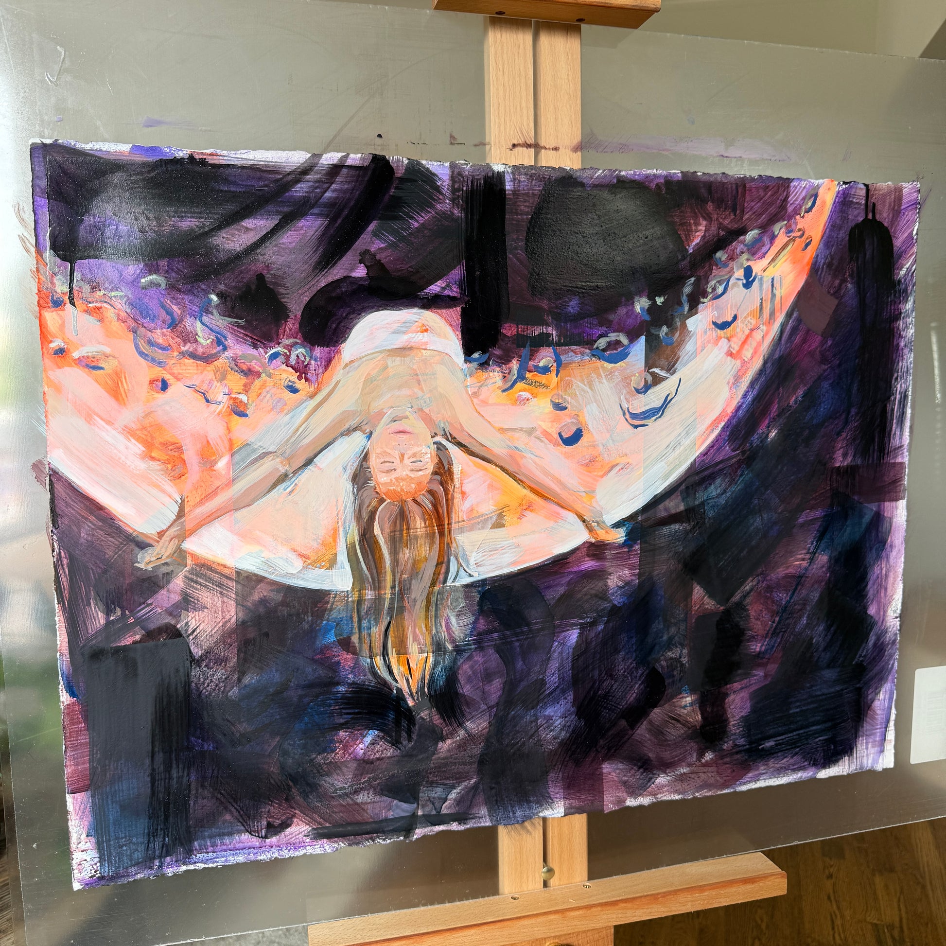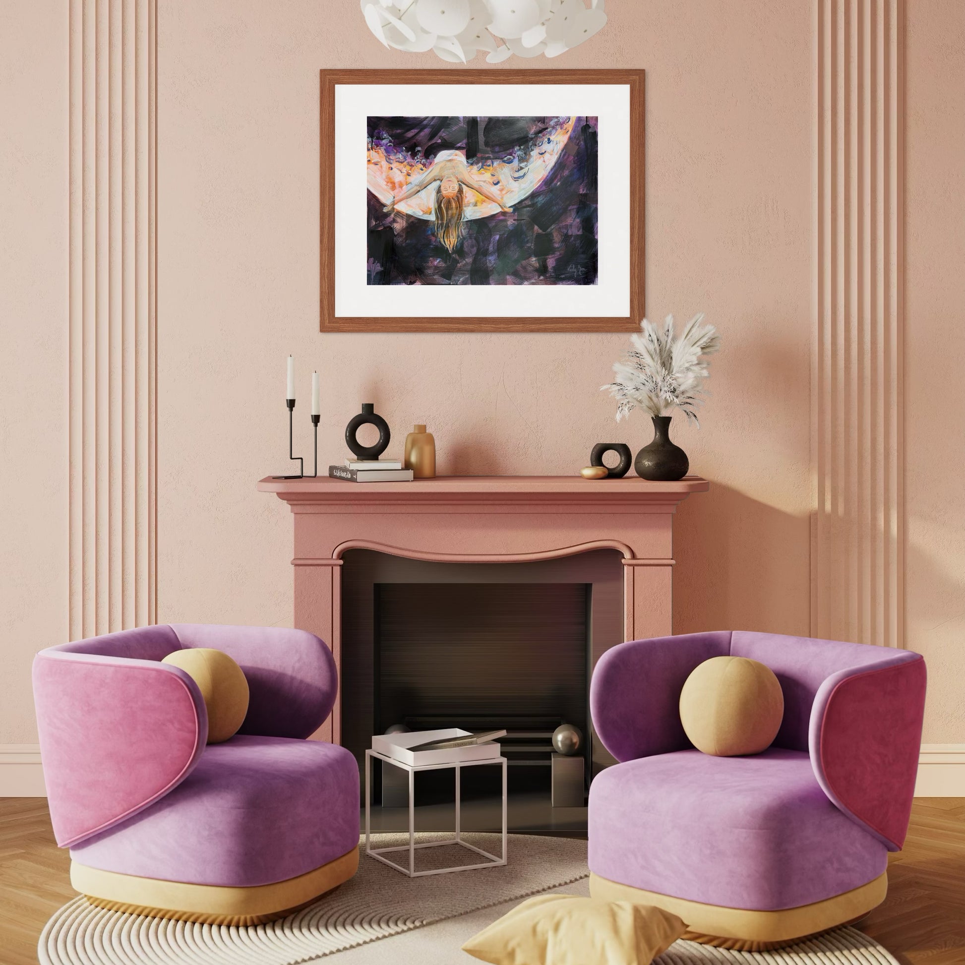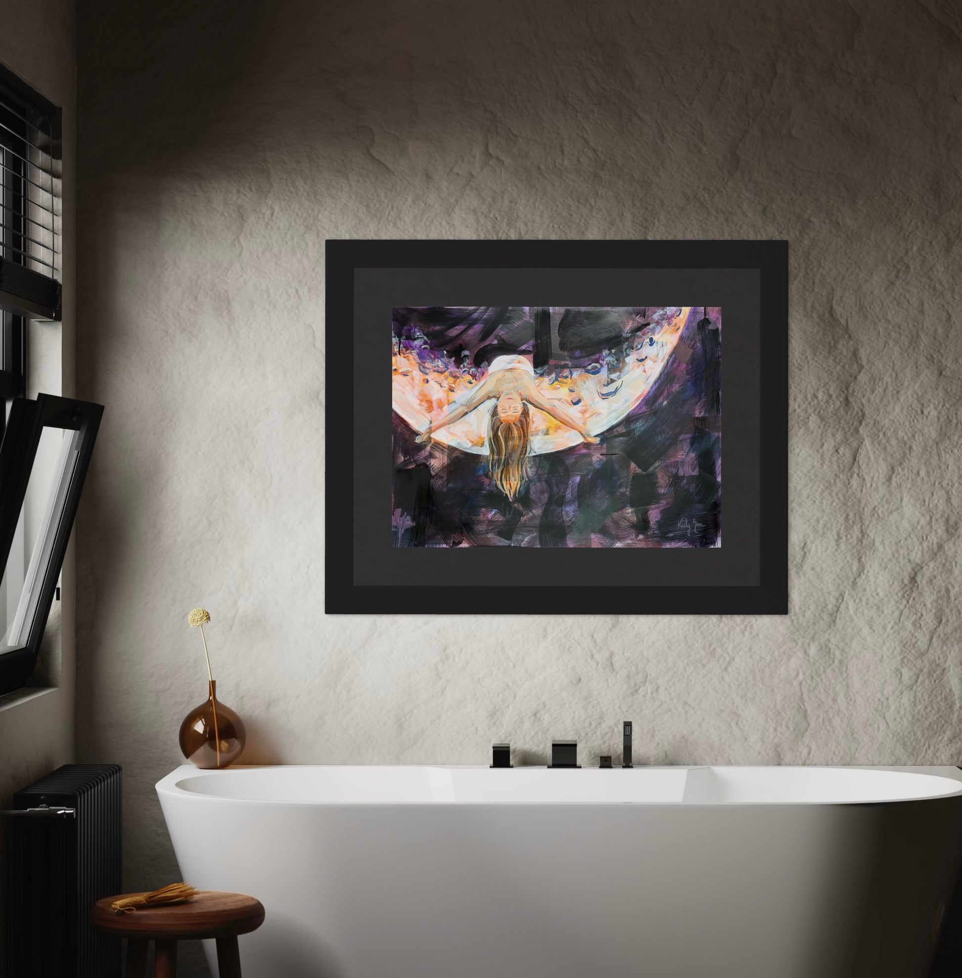 Oil and mixed media paintings are best kept in low-humidity environments. It's recommended to avoid hanging paintings in direct sunlight.